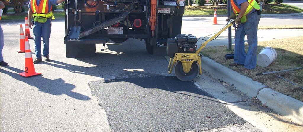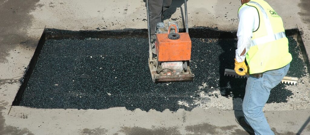 EZ Street can be expected to consolidate up to 40% before maximum density is achieved. When installing a 2″ lift, EZ Street asphalt repair should be placed approximately ¾-1″ higher than the desired finished surface level prior to compaction insuring that the trench contains sufficient EZ Street asphalt repair material after optimum compaction is achieved.